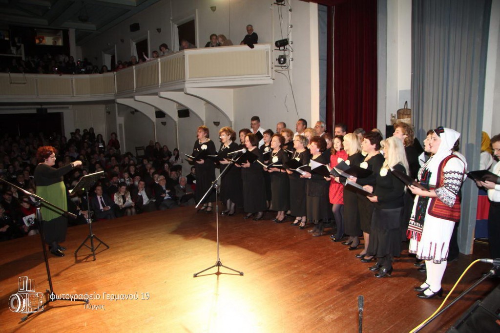 Η εκδήλωση πραγματοποιήθηκε στο δημοτικό θέατρο Απόλλων με τη συμμετοχή του Λυκείου Ελληνίδων Τριπολης. Χόρεψαν και τραγούδησαν οι Χορευτικές Ομάδες Τρίπολης και Πύργου, η ομάδα εφήβων του ΛΕΠ καθώς και ομαδες ενηλίκων, με πολύ όμορφες παραδοσιακές φορεσιές [(Ανδρών: Φουστανέλλα και «πουκαμίσα» (φορεσιά Νεστάνης), Γυναικών: Περαχώρας, Μαυροφούστανο, Νυφική Τεγέας, Νυφική Κεφαλόβρυσου Αργολίδας, Τσακώνικη, Μάνης και χωρικής (Βελέσι-μπόλκα-Γκιούρντα)] σε επιμέλεια και διδασκαλία των δασκάλων Κων/νου Τζανέτου, Ν. Χρυσανθόπουλου και Ελένης Κέζα. Επίσης συμμετείχε η χορωδία του ΛΕΠ σε διεύθυνση και διδασκαλία της Κωστούλας Σακκά.