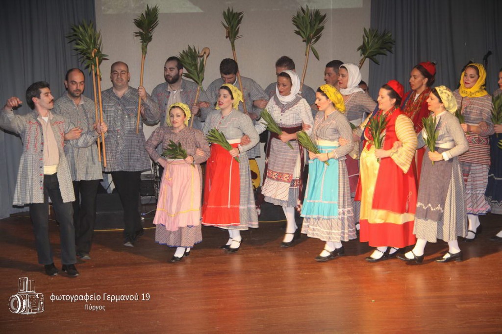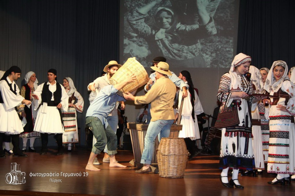Η παράσταση ξεκίνησε με το χαιρετισμό της Προέδρου του ΛΕΠ κας Τούλας Καλαμπόκα και «στον κύκλο του χρόνου» ξεκίνησε απ΄το χειμώνα μέχρι τη γιορτή της Υπαπαντής, προχώρησε στις Απόκριες, εποχή γλεντιού και διασκέδασης. Στη συνέχεια έγινε ιδιαίτερη αναφορά στη συμμετοχή της Πελοποννήσου στην επανάσταση του 1821 (αφιέρωμα στον Κολοκοτρώνη) και πέρασε στην Ανοιξη, Πάσχα και Αη-Γιωργιού, μέχρι το θέρος. Εκλεισε με δυο δρώμενα, το «γάμο» (προετοιμασία της νύφης και του γαμπρού με έθιμα, τραγούδια και χορό) και τον «τρύγο – πάτημα σταφυλιών» (με κέφι, κρασί και χορό). Η παράσταση είχε ζωντανή μουσική με ορχήστρα και τραγούδι.
